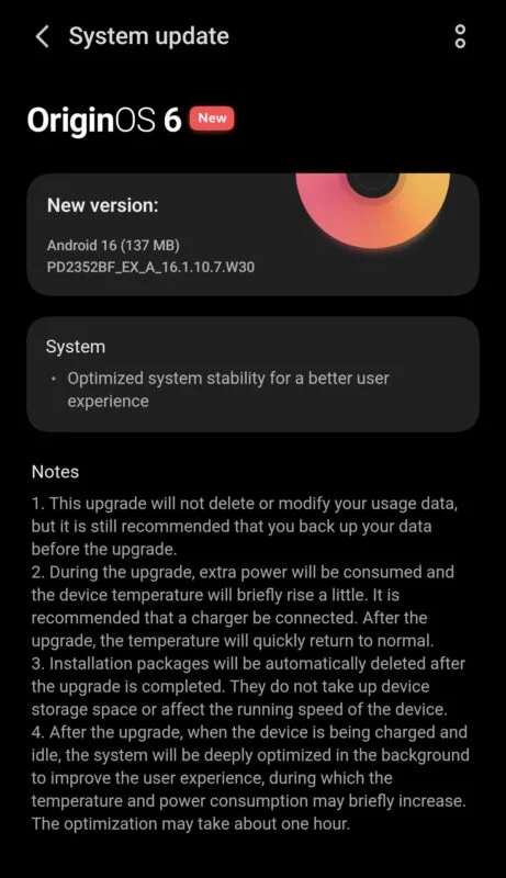 据CNMO了解,iQOO Neo 10R的固件版本为PD2352BF_EX_A_16.1.10.7.W30,已在测试版用户中上线。测试用户仅需下载约137MB的小包百盛证券,完成从beta到stable的切换并获得若干改进;而未参与测试的普通用户则会收到约3GB-5GB的完整更新包。用户可在“设置>关于手机>系统更新”中检查更新,若暂未出现可稍后再试,因大版本通常分批推送,部分机型可能稍有延迟。